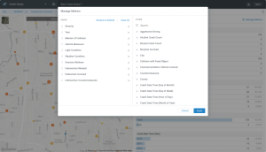 The configurable Metrics tab allows users to add and track any metric about segments in the crash data. Effortlessly filter the values, reorder the information, and focus on the metrics that are most important to your current project.