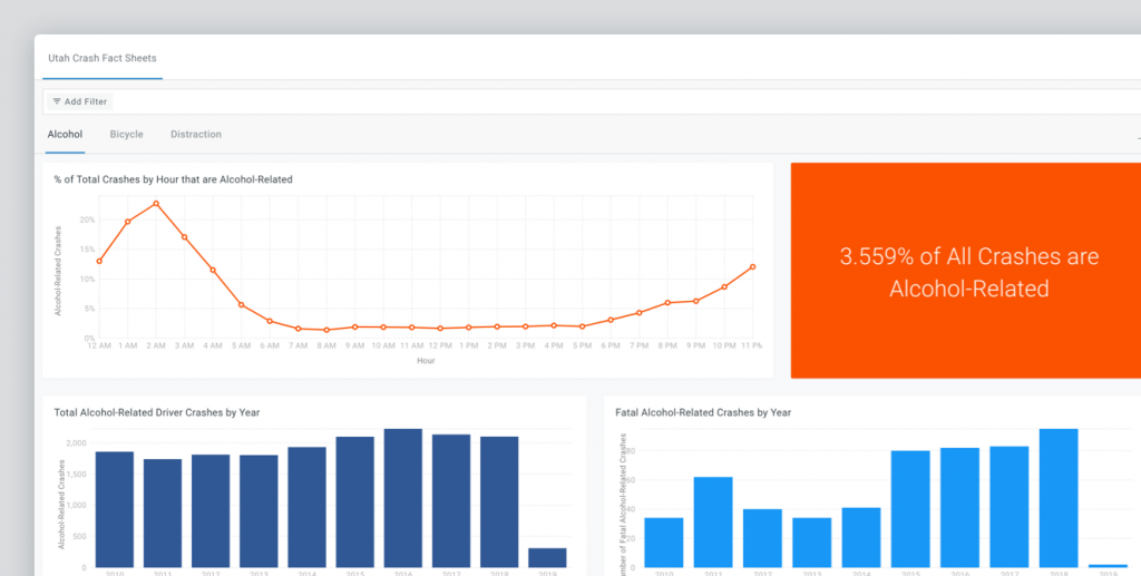 Share custom charts and data through a public-facing URL. Agencies can use this tool to create custom sites with crash facts and share data with key external stakeholders, or the public at-large.